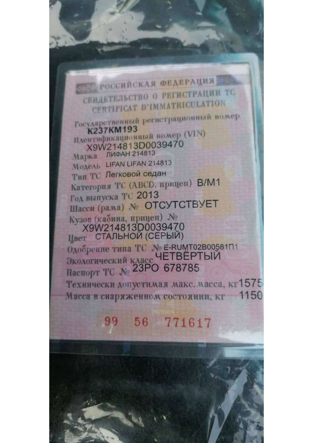Автомобиль марки ЛИФАН модель 214813; 2013 г.в. VIN-номер X9W214813D0039470